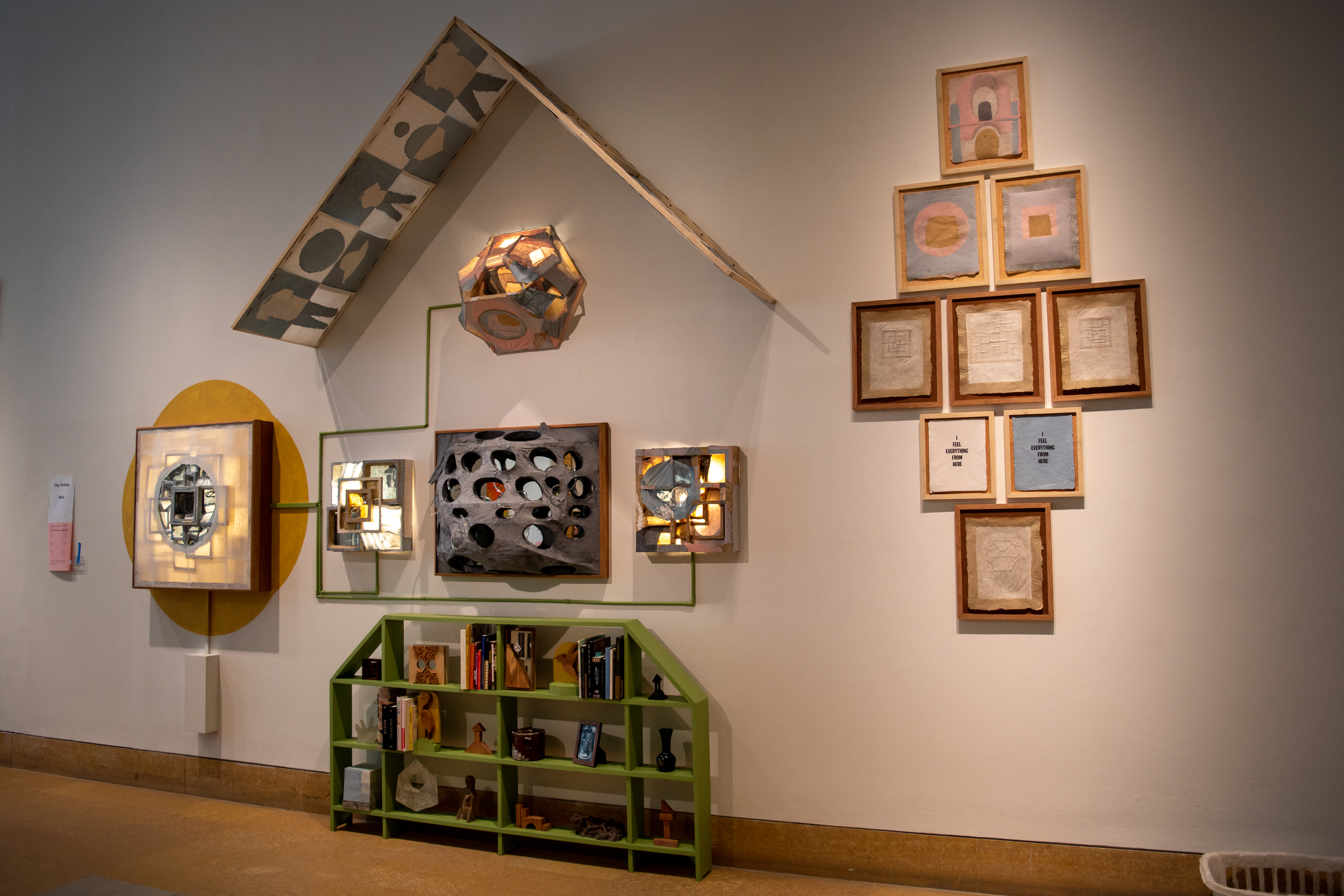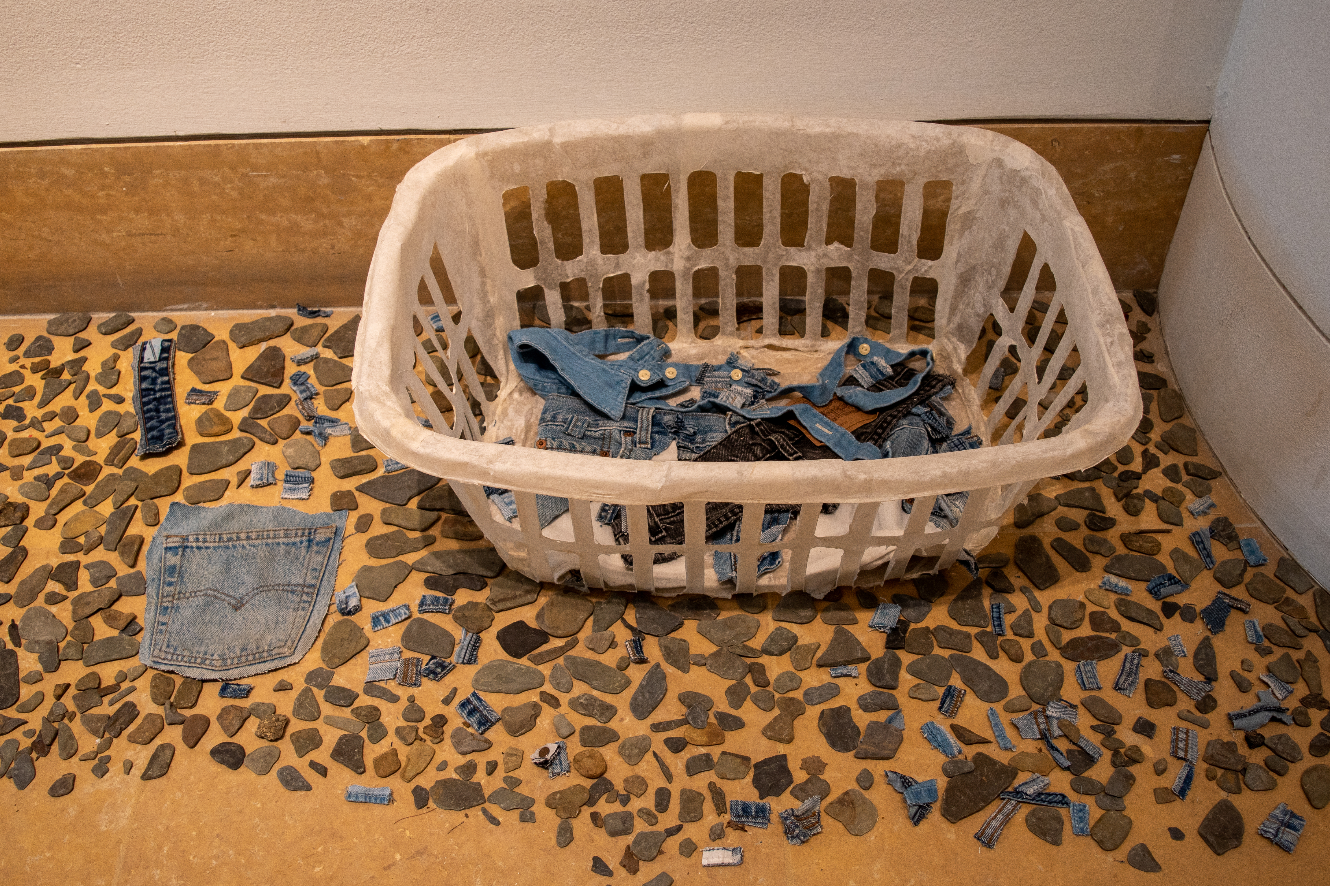 Each piece in this installation is made from Handmade paper, made from the artist clothing.