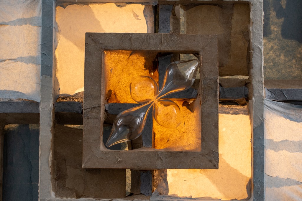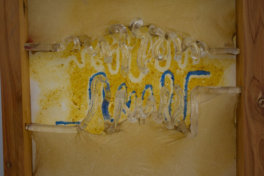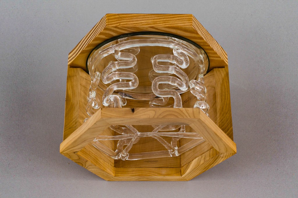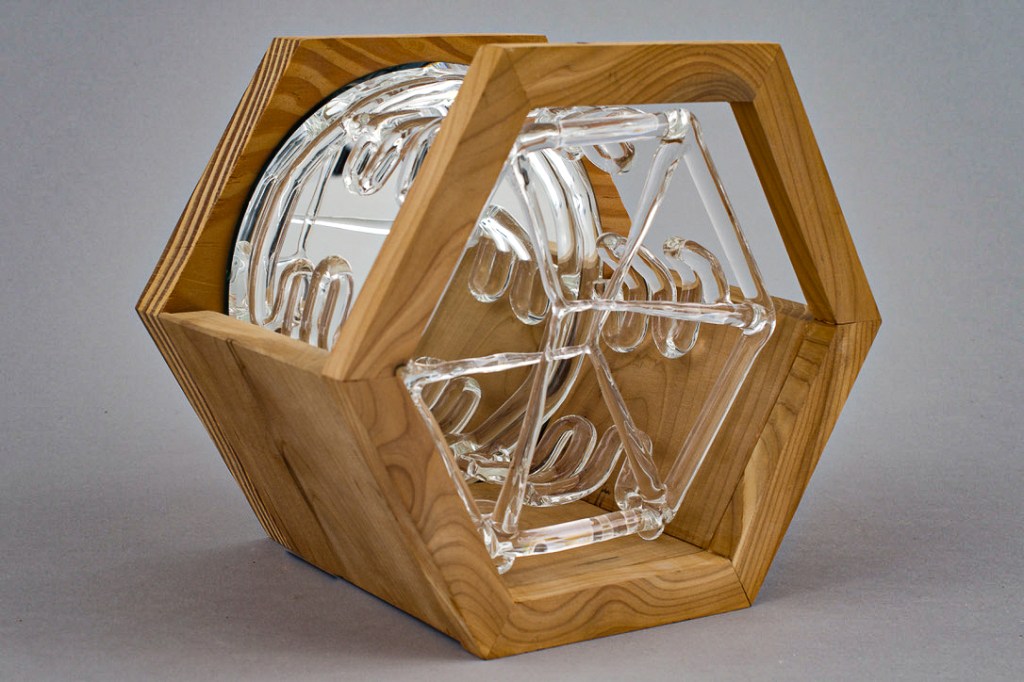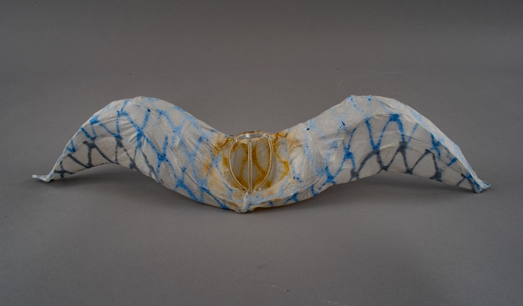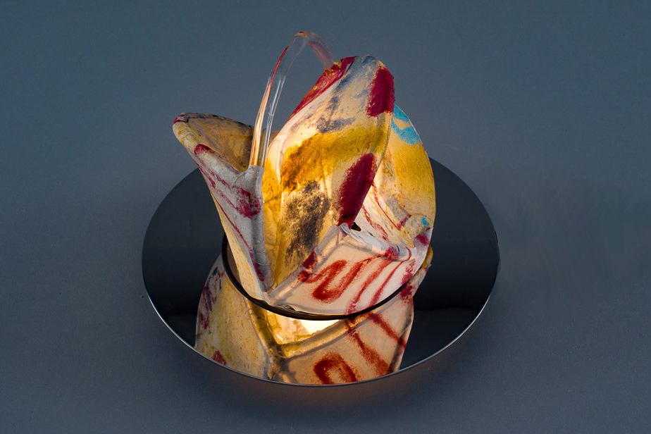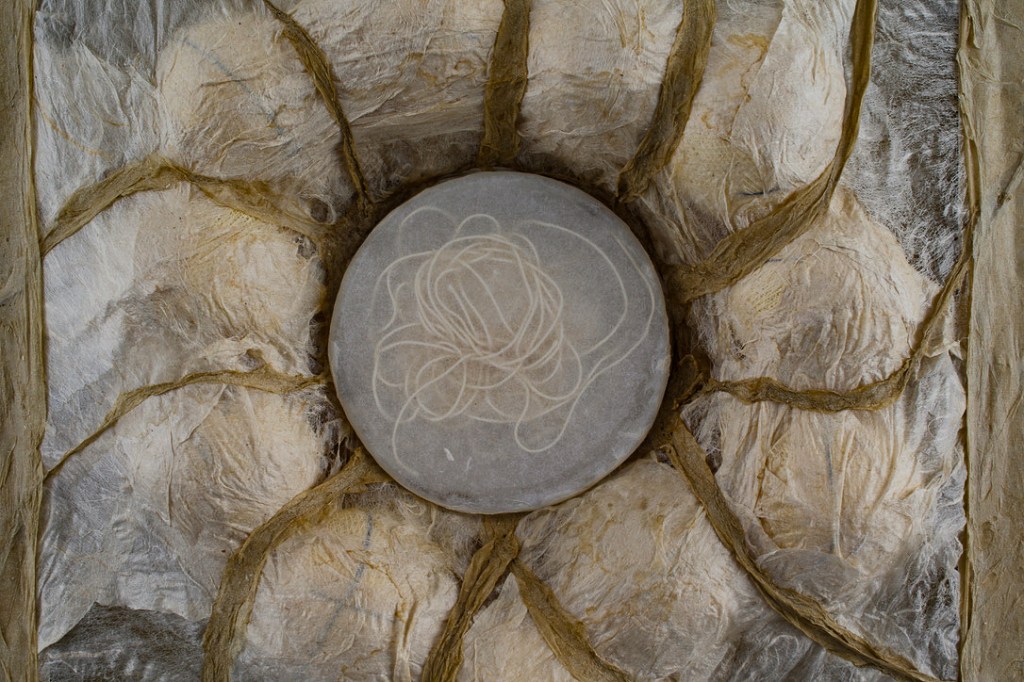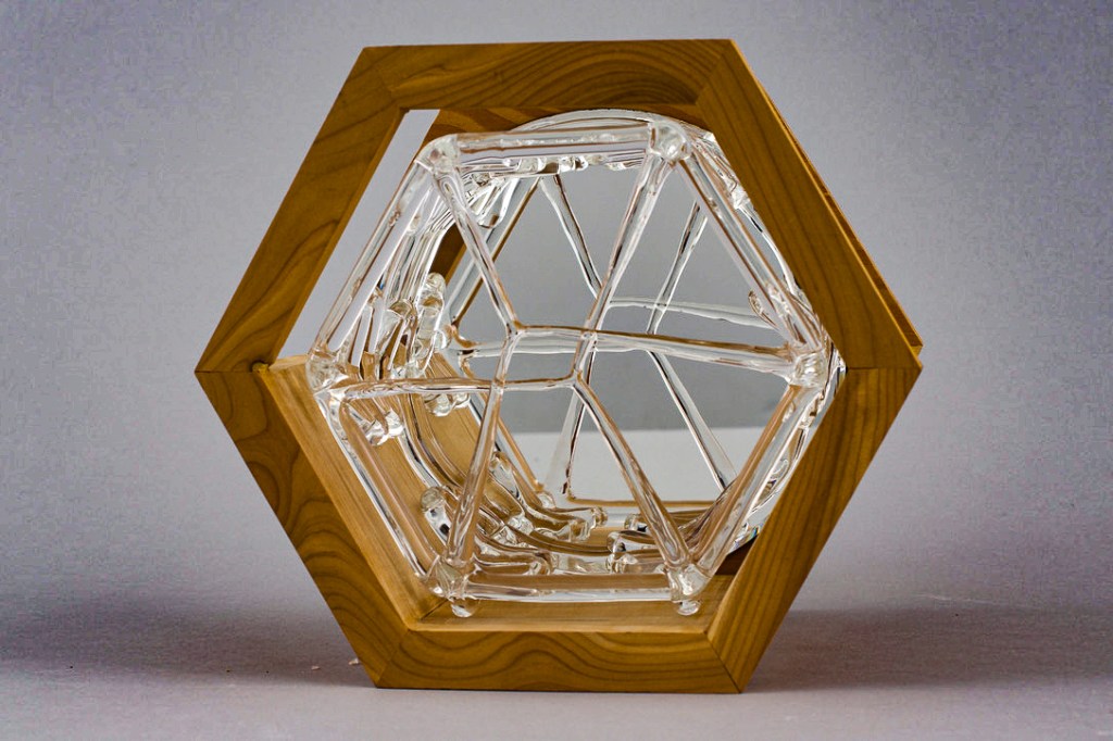Handmade paper (made from the artists clothing), glass, mirror, and wood